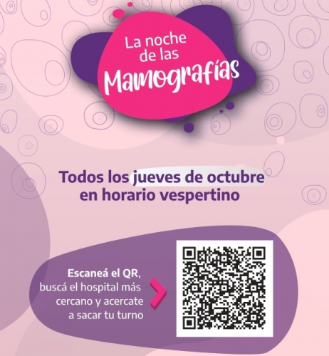 En el mes de concientización contra el cáncer de mama, el ministerio de Salud de la Provincia pondrá en marcha este 2022 una nueva estrategia de detección temprana denominada “La noche de las Mamografías”, para que todas las personas de sexo femenino entre 50 y 69 años puedan acercarse de 18 a 22 horas al hospital provincial más cercano a sacar turno y realizarse ese estudio, si ya pasaron dos años desde el último control.