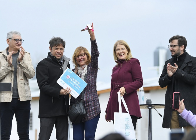 El gobernador de la provincia de Buenos Aires, Axel Kicillof, encabezó este viernes el acto de entrega de 54 viviendas en beneficio de familias del municipio de Villa Gesell. Fue junto a la vicegobernadora Verónica Magario; el ministro de Hábitat y Desarrollo Urbano, Agustín Simone; y el intendente local Gustavo Barrera.