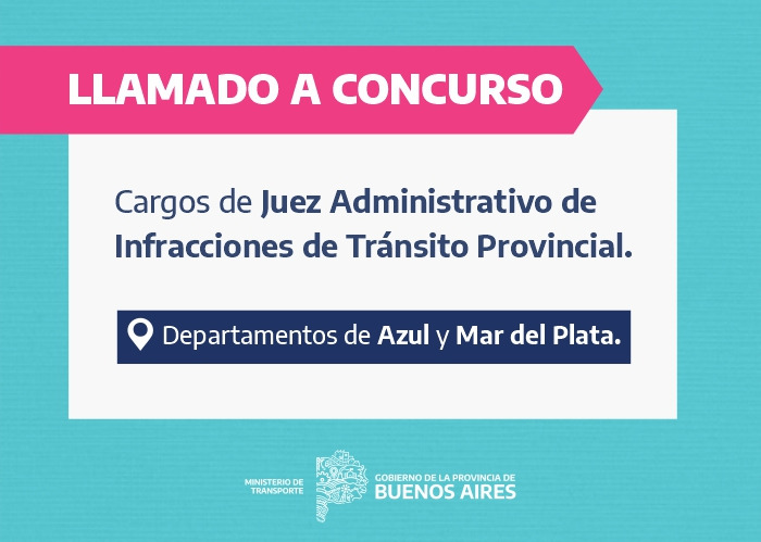 El Ministerio de Transporte de la Provincia de Buenos Aires, a través de la Resolución N° 175/22, autoriza el llamado a Concurso de Antecedentes para cubrir dos vacantes en el cargo de Juez Administrativo de Infracciones de Tránsito Provincial, para cumplir funciones en los departamentos de Azul y Mar del Plata.