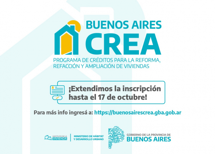 De esta manera, hasta el 17 de octubre, las y los bonaerenses de los 135 municipios que quieran acceder a los créditos para la mejora, refacción y ampliación de sus viviendas pueden inscribirse en la página web del programa https://buenosairescrea.gba.gob.ar